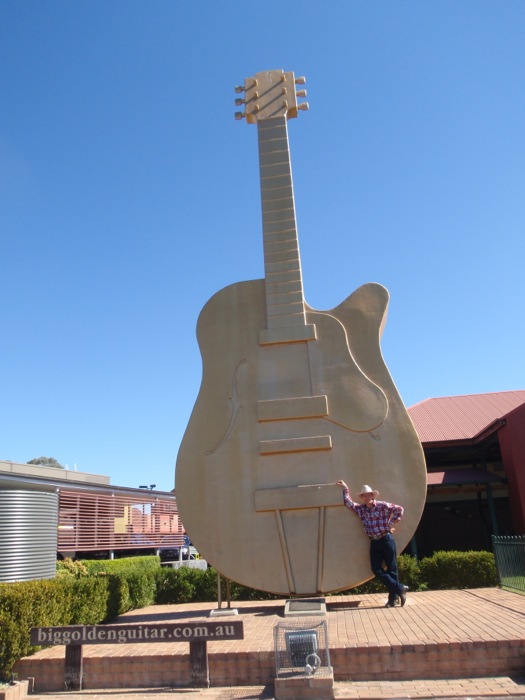 In any case, back to our story, we pulled up at the big gold guitar and acquainted ourselves with what to us, is as close to we could get to a religious icon. This is our mecca, with no other equal in Australia. Whilst the guitar is not huge, nor particularly gold for that matter, it is the key image that is synonymous with “TAMWORTH”. Beyond the guitar is a tourist center which houses a museum dedicated, strangely enough, to Donald Bradman, a wax works displaying wax models of country music stars, as well as a small gift shop and music store. Now this was my type of music shop. Rather than having to wander aimlessly about, searching for the generally insignificant selection of country music albums as I am used to back home, this store was country all the way. There wasn’t any other genre to be found, and I could have quite easily spent our entire trip budget right here. I kept my hands in my pocket for the time being, much to Becs relief.