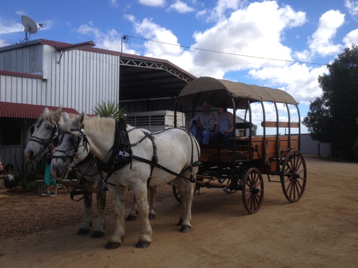 We trekked 10Km or so out of Charters Towers this morning, to take in the sights that awaited us at Leahton Park. Thankfully, we have tripped across another caravan park which allows pets to remain behind, so long as they are secured in the van and we are contactable by phone in any case of emergency or nuisance. Therefore, Alvin and Bethany remained behind, as we went trouping off on our tour. It was Leahton Park that I was on the phone to yesterday, trying my hardest to get us booked onto one of the traditional covered wagon tours.