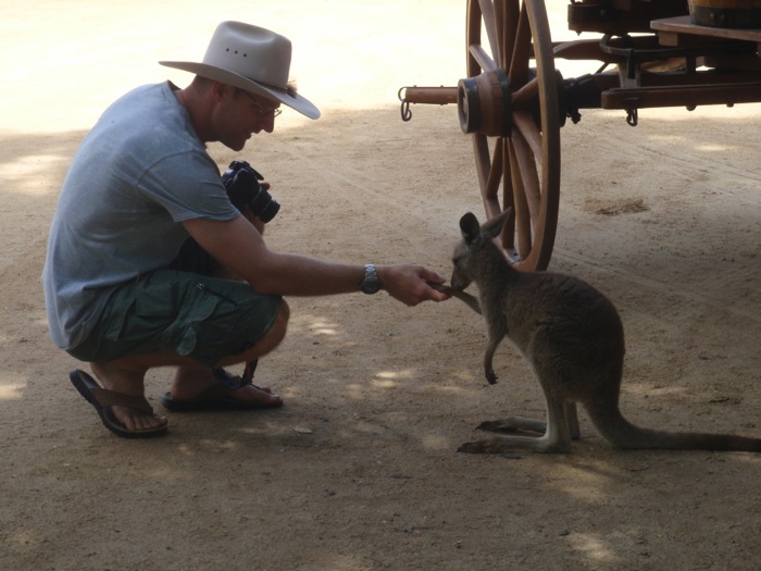 With all of the guests having arrived, we sat around the outdoor dining area in readiness for an authentic Aussie bush tucker morning ‘smoko’ served from a fantastic old west ‘chuck wagon’. As we marveled at the kangaroo joey, deer and dog that joined the party, no doubt all waiting for a stray crumb or two to be dropped, the amenable Mike gave us a run down on the history of the Longhorn Breed, and his involvement with them here in Australia. The billy tea was hot and strong and the fresh damper soft and light, as Mike elicited more than a couple of laughs from the assembly with his typical Australian larrikin humour.