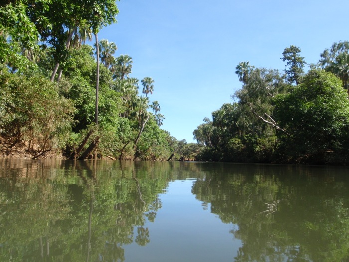 Only a short walk from the carpark, through the grounds of the Mataranka Homestead Caravan Park, brought us to the second thermal pool in town. We were able to compare this estate to where we have our van parked, and decided we were quite happy with our choice.