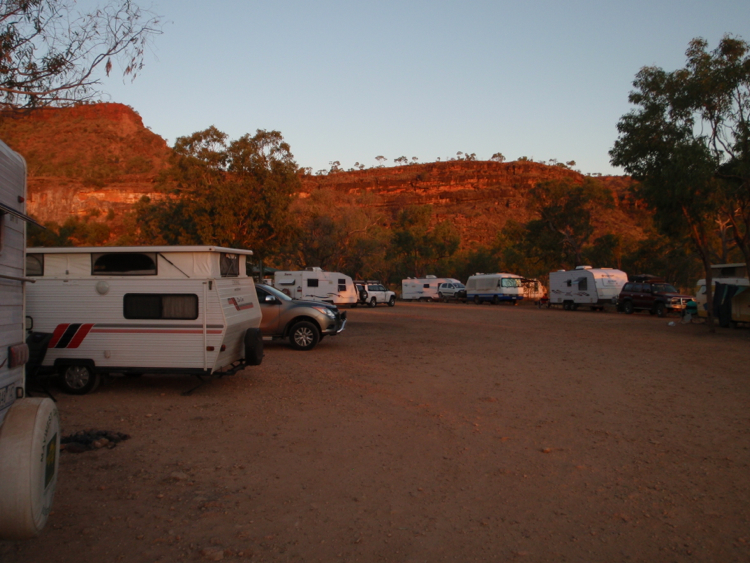 A good night was had by all, but as time wore on, it became evident that the evening chill we have been experiencing in Katherine was not going to materialize here, so we said our goodnights and retreated to the van. With the harsh sun no longer striking the side, it had cooled slightly inside, but there was no breeze to speak of, so the stillness of the air created a turgid, stuffy feeling, that even the fan couldn’t release us from. I can feel a sleepless night coming on, unless the weather changes during the early hours of the morning, a prayer for which I can only keep my fingers crossed.