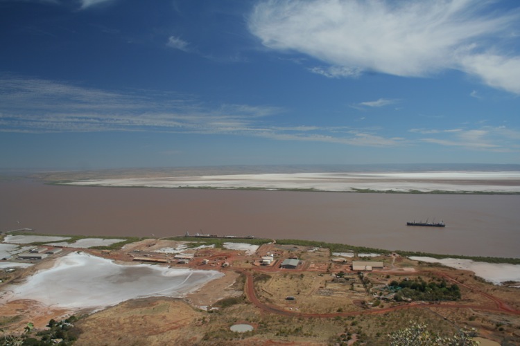 Arriving at Wyndham, we decided that the best way to get an overview of the town, was to do exactly that, by ascending to the upper reaches of the Five Rivers Lookout. Perched high atop one of the soaring hillocks, it was reached by a narrow, twisty stretch of tar. With the windscreen full of nothing but sky at times, as we negotiated tight, blind switchbacks that tested to the extreme, the turning circle of ‘The Beast’ we finally made it to the upper car park. From the viewing platform, we were able to look out over the Wyndham Port, the sprawling salt flats and not least, the meeting of the five major rivers in the area as they flow out to meet the sea. The expansiveness of the scene is difficult to describe, and even to the eye it was challenging to comprehend, as cars took on the form of ants, scurrying along the thin line of brown that was the main road.