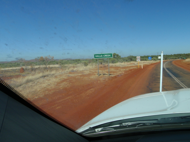 As we motored along the highway, the colours of the surrounding landscape appeared muted today, washed out pastel watercolour tones, rather than the vivid oil emulsion hues we’ve been experiencing. The red dirt returned though as we thundered into Halls Creek, scooting through town to the caravan park. Mercifully, our day on the road was over almost before it began, churning through the final 100KM to the outback town of Halls Creek.