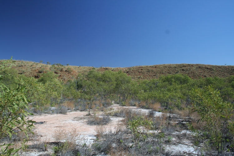 Regardless of the road conditions, we made good time, covering the 150KM and arriving at the small parking area near the base of the crater in spot on 2 hours. There was already another small four wheel drive in the car park when we arrived, an older couple who looked decidedly non-threatening sitting beneath the shade of an information shelter. Very unlike the movie I decided. Emerging from ‘The Beast’ with a back relieving stretch, we peered across the spinifex covered plain to where the slopes of the crater rose up rather insignificantly.