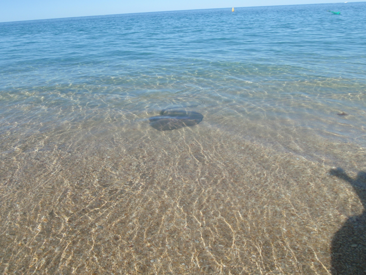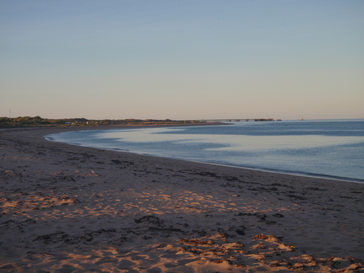 After a few more strikes, and a few more morsels of lost bait, but no success in landing the big one, we moved a little further around to where we had watched a guy who obviously knew what he was doing land a dozen Garfish. Our luck wasn’t to follow his, although we did unexpectedly stumble across a Mantra Ray sunning itself in the shallows and a turtle bobbing about in the swell just off the shore. The sighting of the turtle at least made our fishing experiment worthwhile. After a few hours, and many bored urgings from Bec, we moved again, this time well down the beach to the jetty and boat ramp.