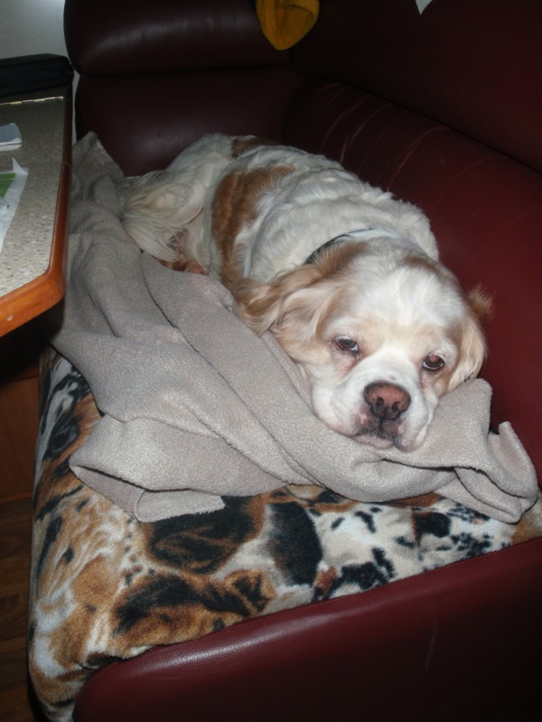 We still weren’t too confident about leaving the pooches on their own, so any sightseeing we had planned for today was cast aside to look after them. While we spent the day lying in bed watching tele, Bethany curled up between us, happy for the chance of a cuddle. Alvin on the other hand, took himself off to his own bed, where we stayed for the entire day, sleeping and hardly even raising an eyebrow for the occasional pat on the head. This was quite out of character for him, as he is usually rolling about, scratching and chewing at his paws. For him to lie, prostate, unmoving for several hours was a good indication of how unwell he was feeling.
