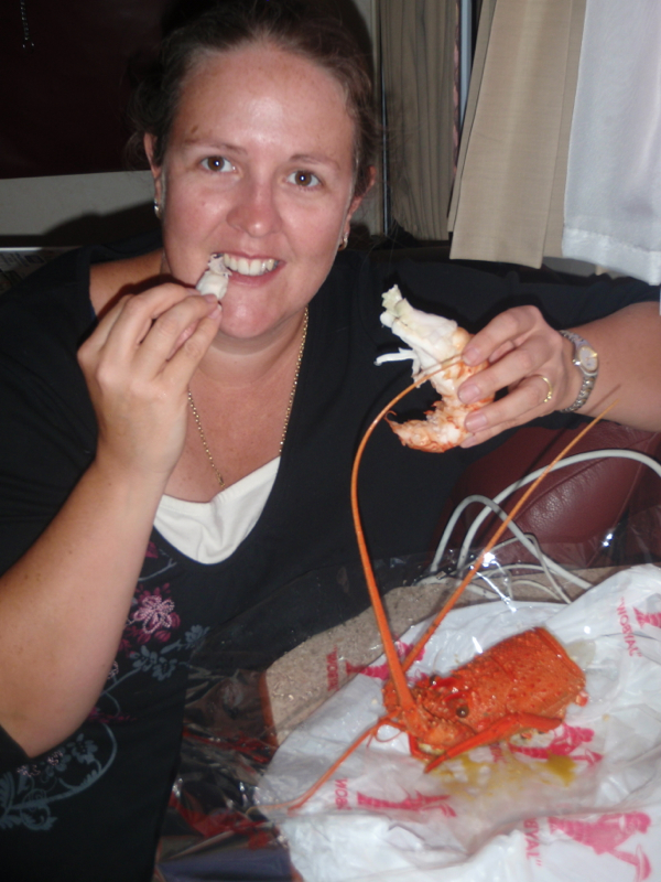 Although, we still hadn’t ventured further than walking distance from the caravan park when I found myself pulling to the side of the road yet again, this time to allow Bec to run into the ‘Lobster Shack’, where she was able to get herself a fresh off the boat and cooked this morning lobster for lunch.
