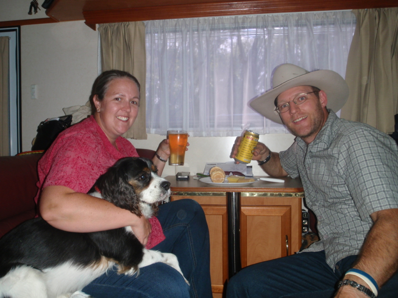 Yep, took us a while, but darling Alvin finally figured out how to get out of the way when we set the camera up on self timer. As for heading south, we are seriously considering doing a u-turn and tracking north for again to try and avoid the drenching rain that the south west is copping. Might head inland to Kalgoorlie, rather than follow the coast around as planned.