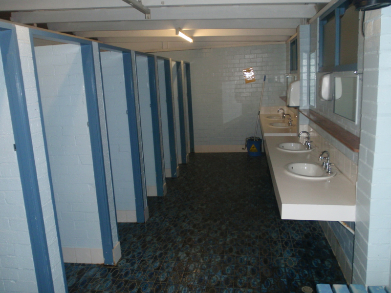 In fact, considering the weather today, the blue bathrooms that I mentioned in passing yesterday seemed more apt and in touch with my mood. So, as pledged I will explain our amusement in them. Bec was first to view them when we arrived, and as is my habit, I questioned her as to their suitability. The bathroom block can really make or break a caravan park for us, so I was interested to get her take on them. She assured me that they were okay, but wouldn’t elaborate. So I wandered over to see for myself. I found that opening the door to the ablutions area, leads into a parallel world in which everything is blue. From the almost iridescent blue floor tiles, to blue walls, blue benches and even a blue mop and bucket, it’s a case of sensory overload. While photos really don’t do it justice, it really does lend new meaning to ‘feeling blue’.