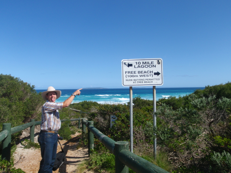 The first stop on the trip was the low bluff overlooking Pink Lake. While a sign at the lookout describes the organic activity that leads to the pink tinge to the water, the lake took on a decidedly bleak gray appearance for our visit today. Our brochure had kindly warned us that the lake was unlikely to be tinged with pink though, so we couldn’t complain. Continuing along the route mapped out in our brochure, we next came to a sensational beach at 10 Mile Lagoon.