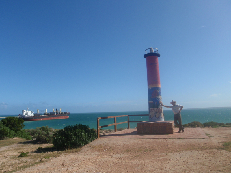 Having spent the better part of an hour umming and ahhing about the painting before deciding to leave it in the gallery for someone else to admire, at least for the time being, we drove out along the narrow spit of land between Bosanquet Bay and Murat Bay to the Pinky Point Platform and Lighthouse. I was expecting more of the lighthouse, imagining a generous sized structure, but found only a tile mosaic inlaid podium a few metres tall. Erected in memory of seaman who have lost their lives to their love of the ocean, it was however a poignant memorial.