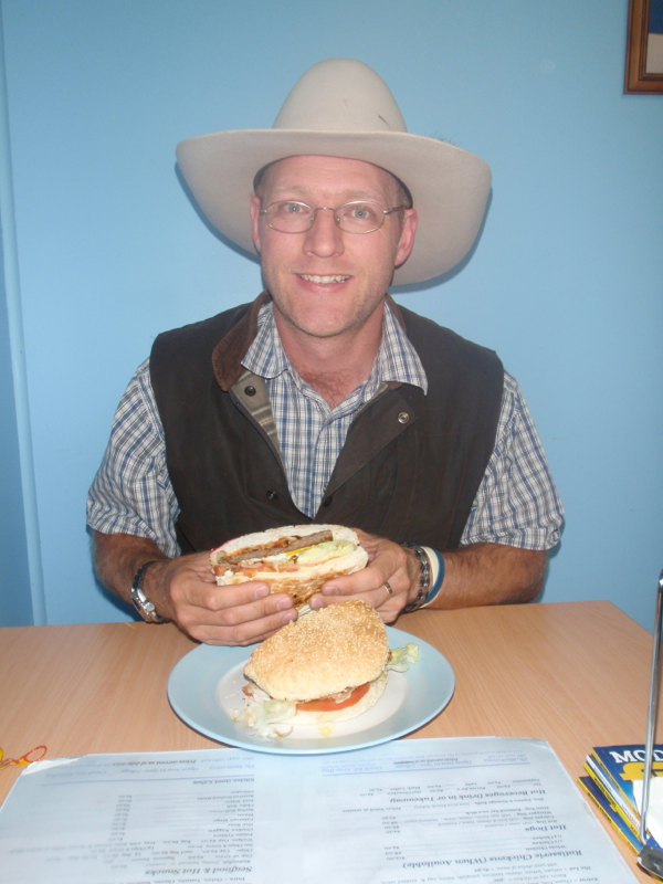 That being the case, our next stop was in Arno Bay for lunch. The Arno Bay Jetty Café boasted the giant Arnormous Burger, which sounded to me much like a challenge. For $11.00 each we both ordered the big daddy of burgers, before sitting down in the little dining room off to one side of the café. The atmosphere was far from buzzing, as we sat on mismatched chairs at mismatched tables. Another group of diners were sitting at another table, talking in hushed tones amongst themselves and we followed suit as we waited for our meals. It was almost like sitting at a strangers kitchen table and not being entirely sure you were welcome.