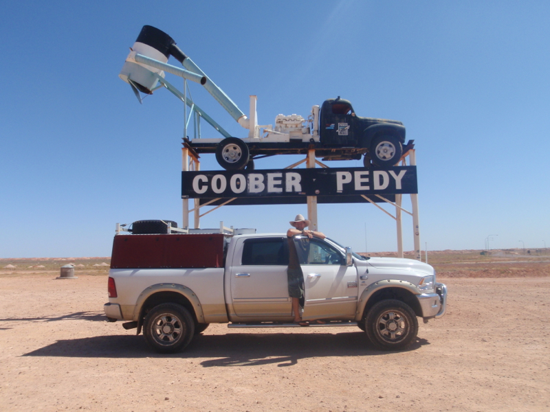 Not that we need be concerned with early starts, when by just before midday, we were pulling into the welcoming gates of our caravan park. Located a few kilometres out of town, a short way down a clay crowned road that would be interesting in wet weather, it is as quirky as what we recall the entire town being. The sole reason for us choosing this park was the appeal of free showers. Water is in such demand in Coober Pedy, all of the other parks have coin slots in their shower stalls forcing you to pay as you go. We figured that option would be expensive for Bec and smelly for me, thus here we were, all ready to take advantage of a free wash.