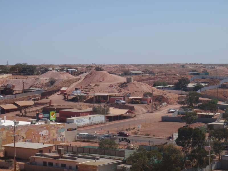 The bulk of the businesses that line the main street cater to either the mining trade, the tourist trade or to both, for there is very little else that sustains the town. That said it is a marvelously multi-cultural little town owing to the influx of immigrants all searching for the brightly coloured gleam of a prize opal. Every second shop sports a bright pied façade and signage to suggest that it is the best place in the whole of Coober Pedy in which purchase opal, from raw, uncut stones through to exquisitely polished gems.