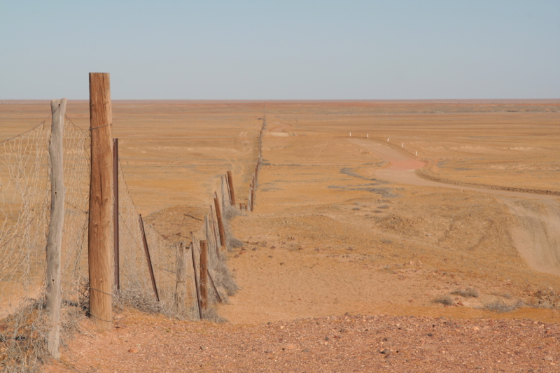 The dog fence slips across the landscape.