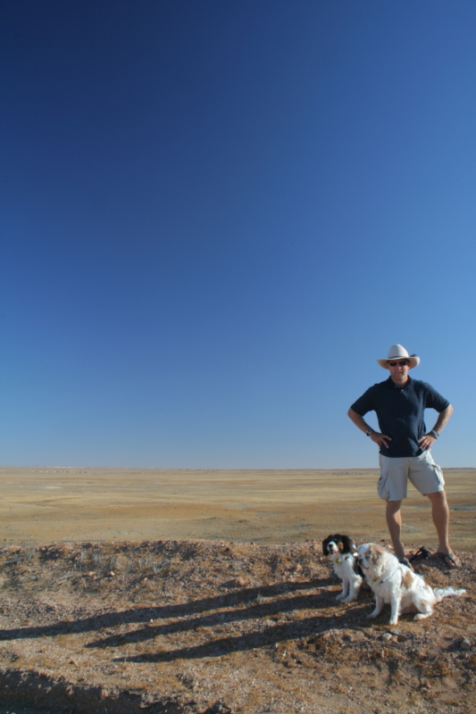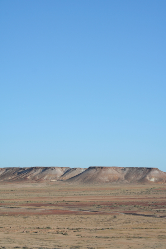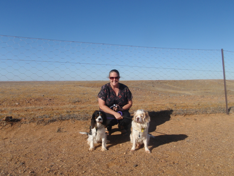 Naturally, we stopped for pictures of our own two dogs in front of the dog fence, which was erected across three separate states to prevent dingo attacks on sheep herds. From the information bay at which we stopped, the fence snakes away endlessly across the desolate, flat landscape. Just the other side of the fence is a sprawling flat area known as Moon Plain, which features in several movies, including Mad Max III and Ground Zero.