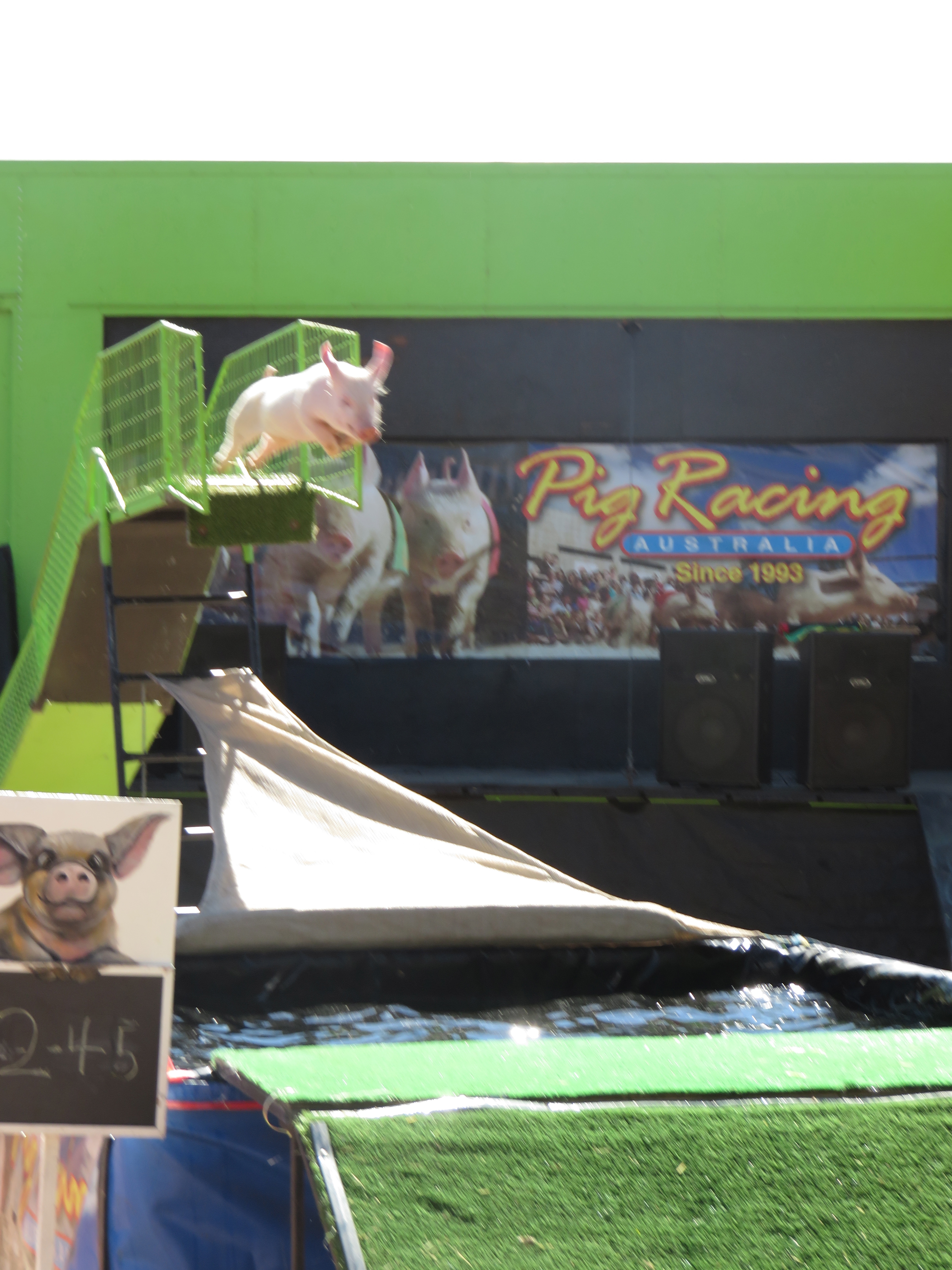Out in the streaming, warm sunshine, we were treated to more typical rural sights and activities. The Flying Pig Show springs to mind, which featured astronomically quick pig races as well as the highlight of the demonstration, the high diving pigs leaping in a single bound from springboard to pool.