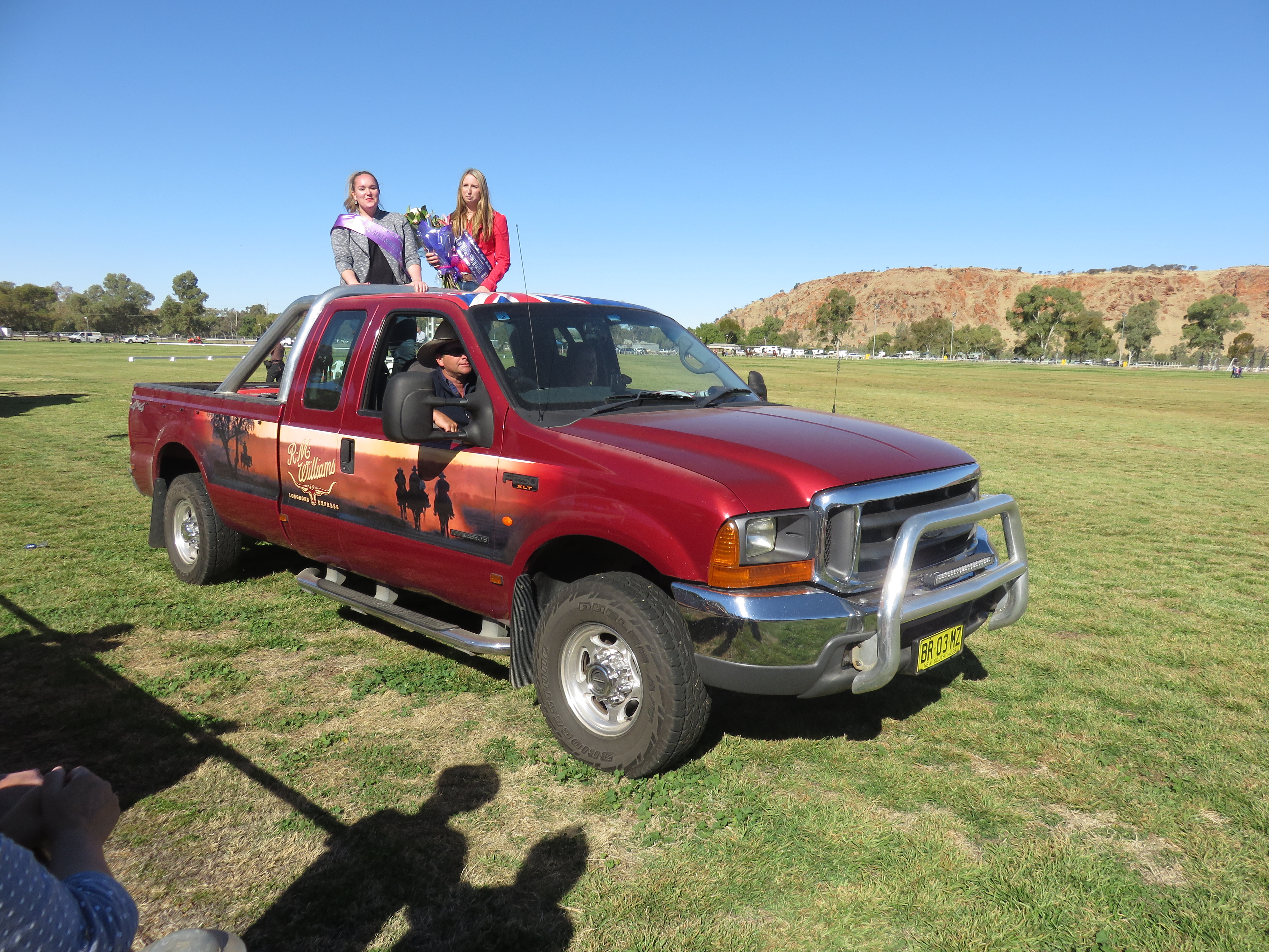 Weary from our day of roaming from end to end of the show grounds, we sat down for a short period to watch the grand parade. As well as an escort of emergency vehicles from all of the services, riders atop fantastic equine specimens and a cavalcade of cattle, there was an odd assortment of private vehicles, obviously invited to take part as they belonged to sponsors. There was even a motorised disability scooter taking part.