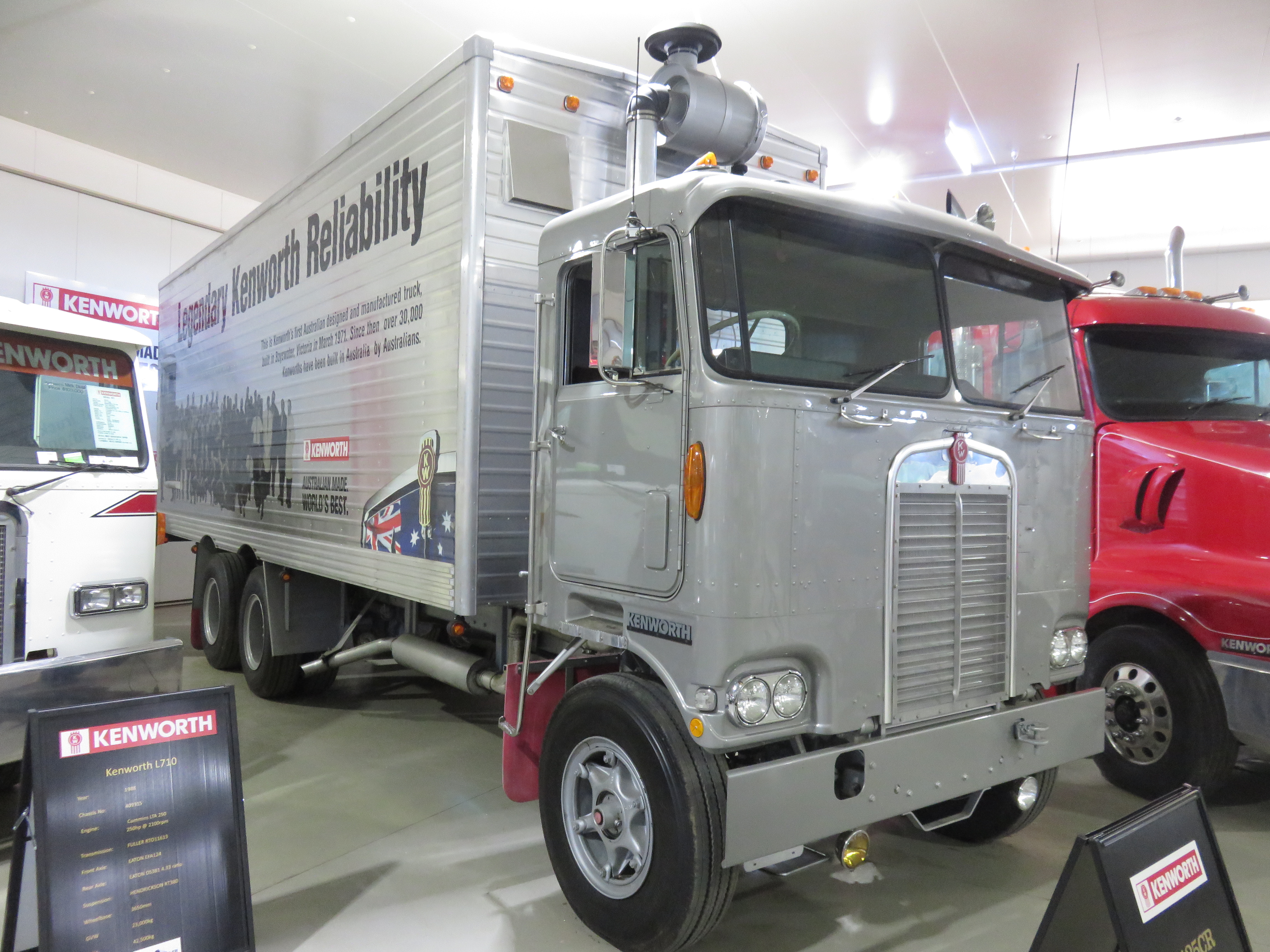 I wandered around for a couple of hours, marveling at the Kenworth Dealers Hall of Fame, where there was hulking big Kenworths from the very first Australian built rig to carry the ‘KW’ logo, the one of only 50 special edition models released just last year. As I looked on agog, an old timer wearing the patch of a museum volunteer gruffly coughed “You wanna see a nice truck son? Come with me.” I followed him towards the end of the hall, where the very first Aussie Kenworth proudly held court, me thinking ‘Yep, I know all about that one’. But no, we bypassed it, moving past, towards a small access door plastered with warning signs to ‘keep out’. The old timer slid a key into the lock and threw the door open for me. A giant warehouse opened up beyond the portal, spotlessly clean, the fresh paint still smelled wet. Lit by banks of bright overhead lights a sterile feel fell over the wide open space. It was another 50 yard walk to reach the sole denizen, a new acquisition by the museum, this truck had not even officially gone on display yet. A grimy old red and white Kenworth cab over cattle truck. With dual steers, it was the epitome of lavishness in its day, capable of hauling 41 head of cattle on the rigid tray, as well as dragging three trailers of similar bulk. While not my favourite display, I couldn’t get over the reverence with which the old-timer spoke of the rig, his pride of his position evident.