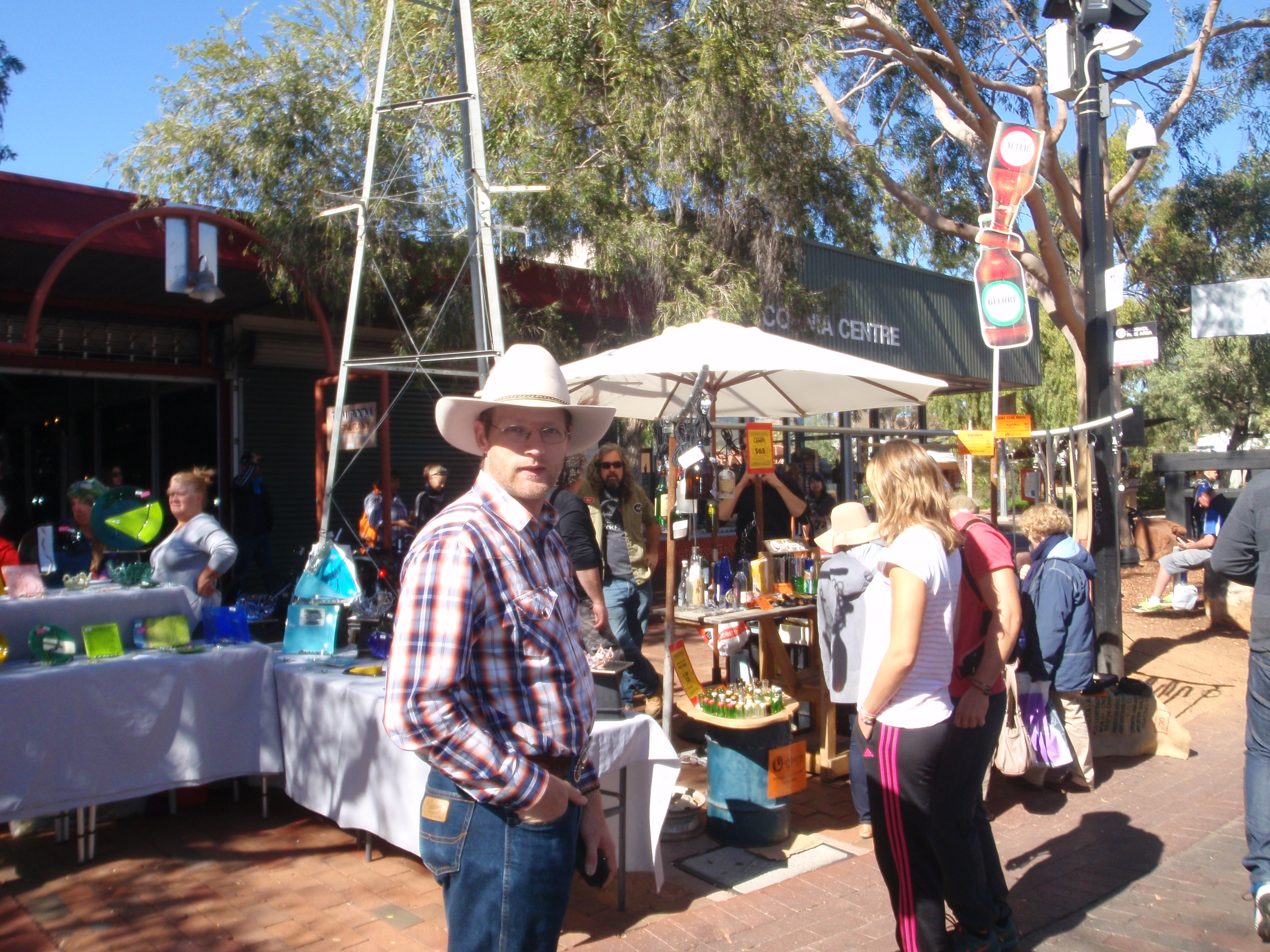 It was not long after our awakening that we were firing up ‘The Beast’ for the short drive into the centre of Alice Springs, where the allure of the Sunday Todd Mall Market beckoned. Avid market goers, we lapped up the atmosphere of the bustling thoroughfare, crowded with jostling shoppers all trying to get a look at the wares on offer, each side of the mall was resplendent with trestle tables, gaudy gazebos and diminutive caravans, selling all manner of craftily fashioned goods. If it was a beady trinket, a hand knitted beanie, a sparkly piece of costume jewelry you were after, it was all here. Then there was the food. From all corners of the globe, every cuisine you could imagine was being prepared in the miniscule kitchens in the tiny little caravans, right before your very eyes. The smells wafting through the mall were enough to set our tummies growling, our mouths watering.