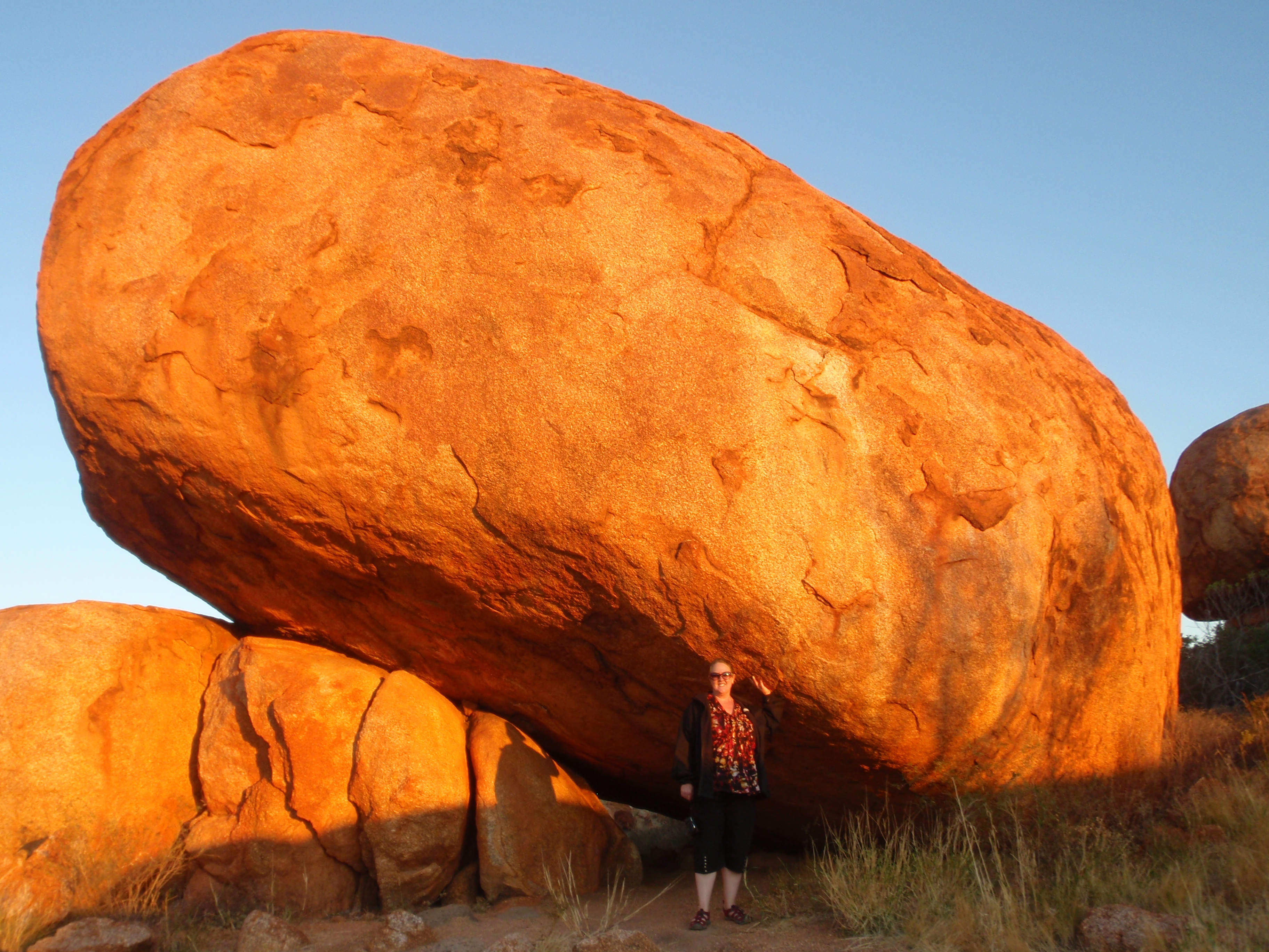 It wasn’t to be an entire waste of a day however, although it was 4:30PM by the time we ventured out from the confines of the caravan park, to undertake a second foray to the Devils Marbles. Since we have travelled in excess of 3000KM just to get to this point, we thought it puerile not to make the effort to have another look at them. Not only that, but yesterday we had failed to discover the locale of the most photographed of the orb like balls of rock and I was determined to have my photograph taken whilst standing beneath them.
