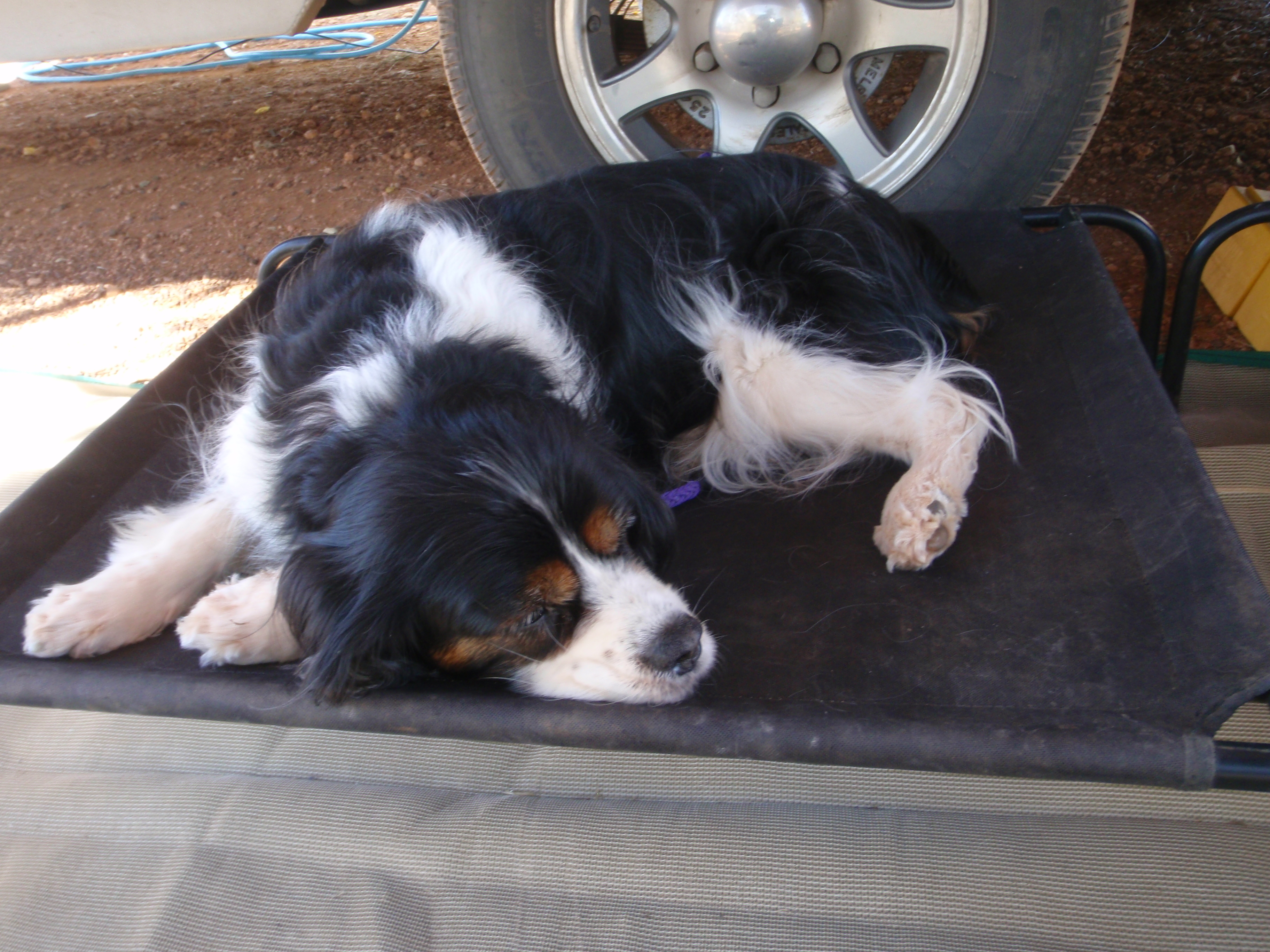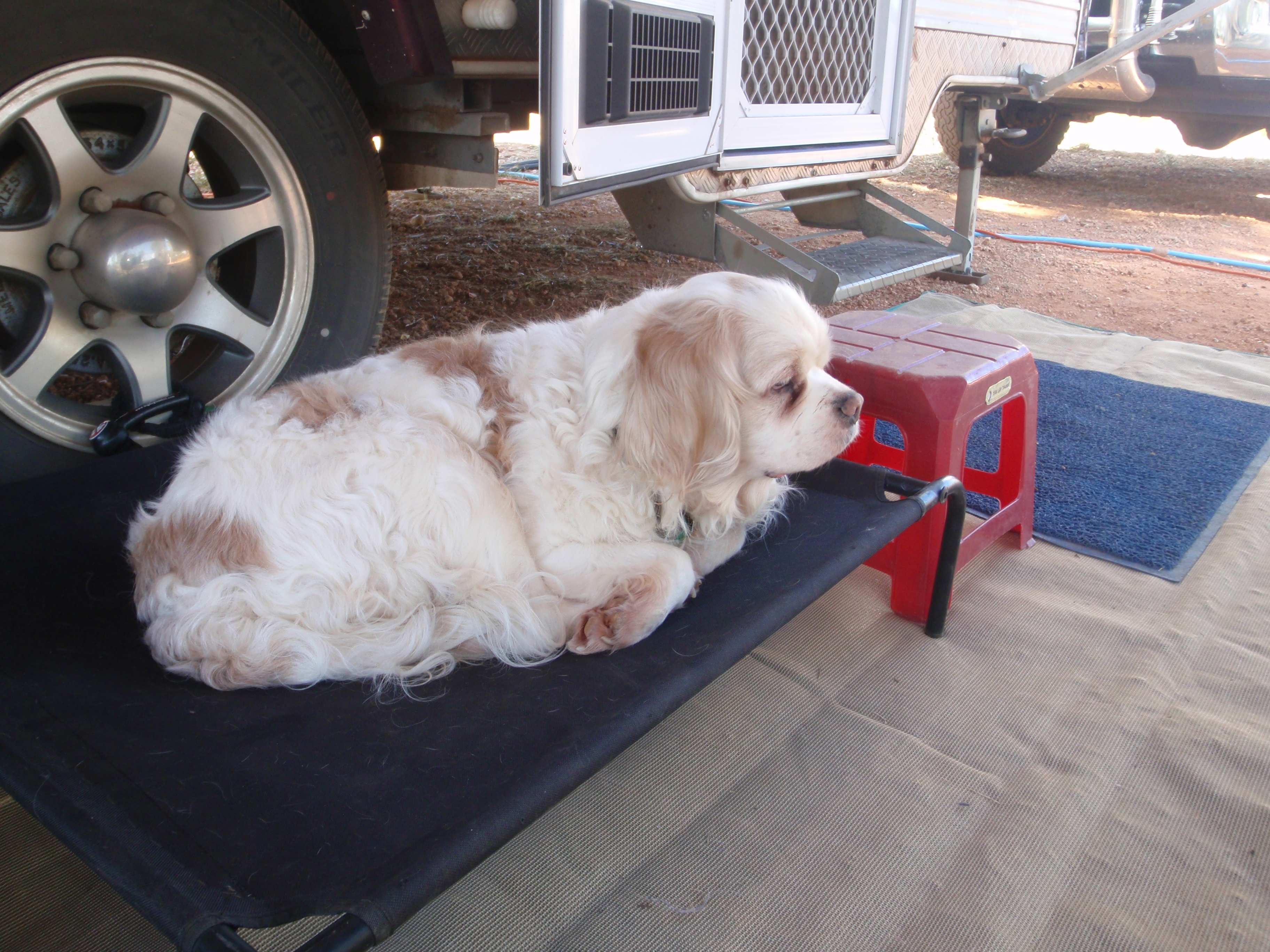It was to be another day of rest today, and unlike our previous day of respite, we didn’t even have any chores to set our hand to. Except that is, for the ubiquitous load of washing, but even that had been minimised to a single little consignment. We then set about wrangling our outdoor chairs into such a position as to best take advantage of the warming solar rays. With the dogs lying contentedly on their own camp beds, snorting only sporadically at a rare passer by here an there, Bec and I both dipped our hats to prevent stray sunbeams from scorching our retinas, as we angled our noses towards our books, the yet to be perused pages decreasing at an alarming rate.
