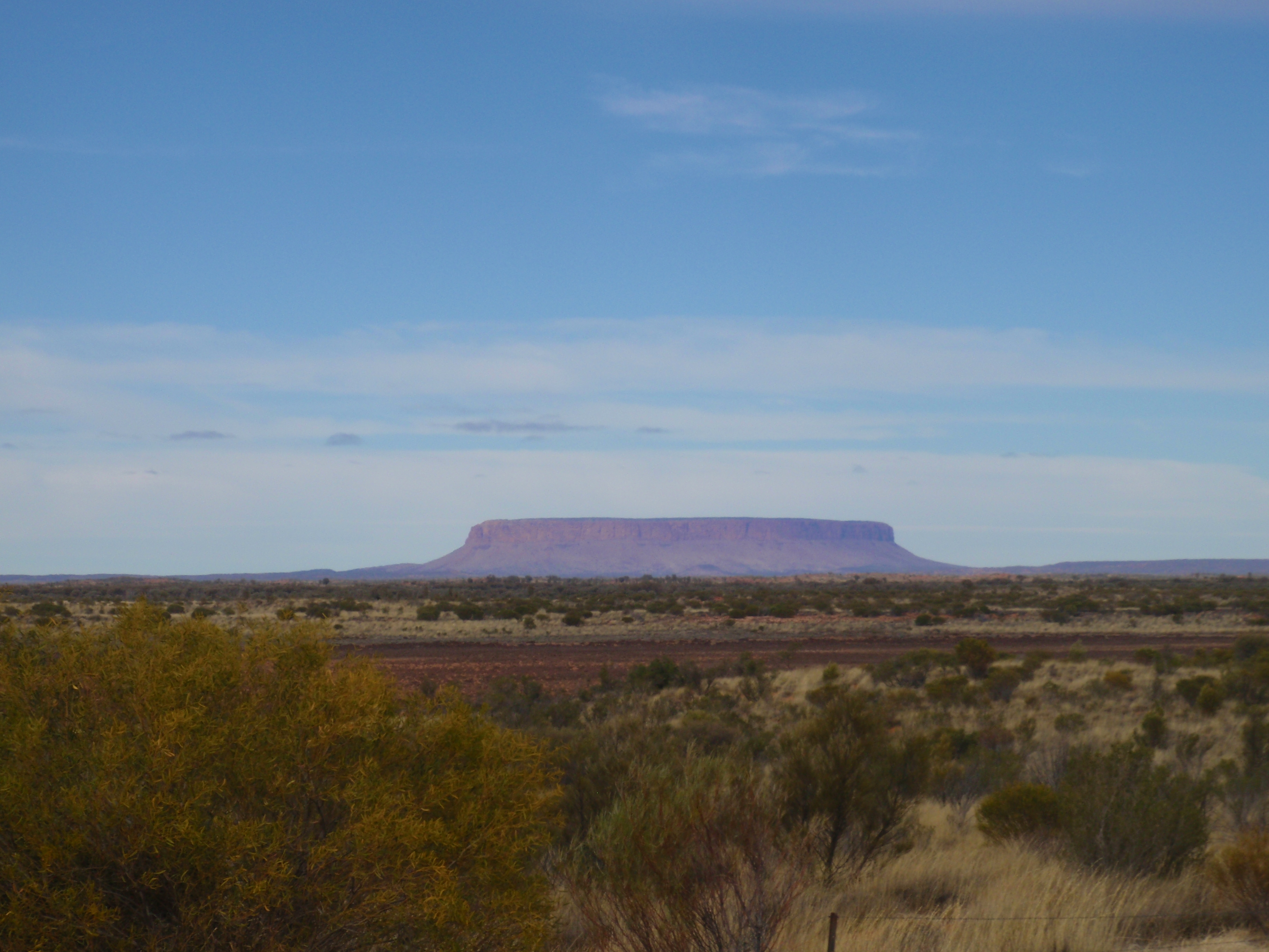 Shortly after rejoining the road, the commonly mistaken for Uluru, Mount Conner made its presence known, rising up stolidly from the surrounding plains. Even at the distance we were, with no other reference for scale, this singular mount looks to be massive. As planned, we stopped very briefly at a wayside stop, from which clear views across to Mount Conner allowed for unimpeded photographic memories to be created, before we continued onward.
