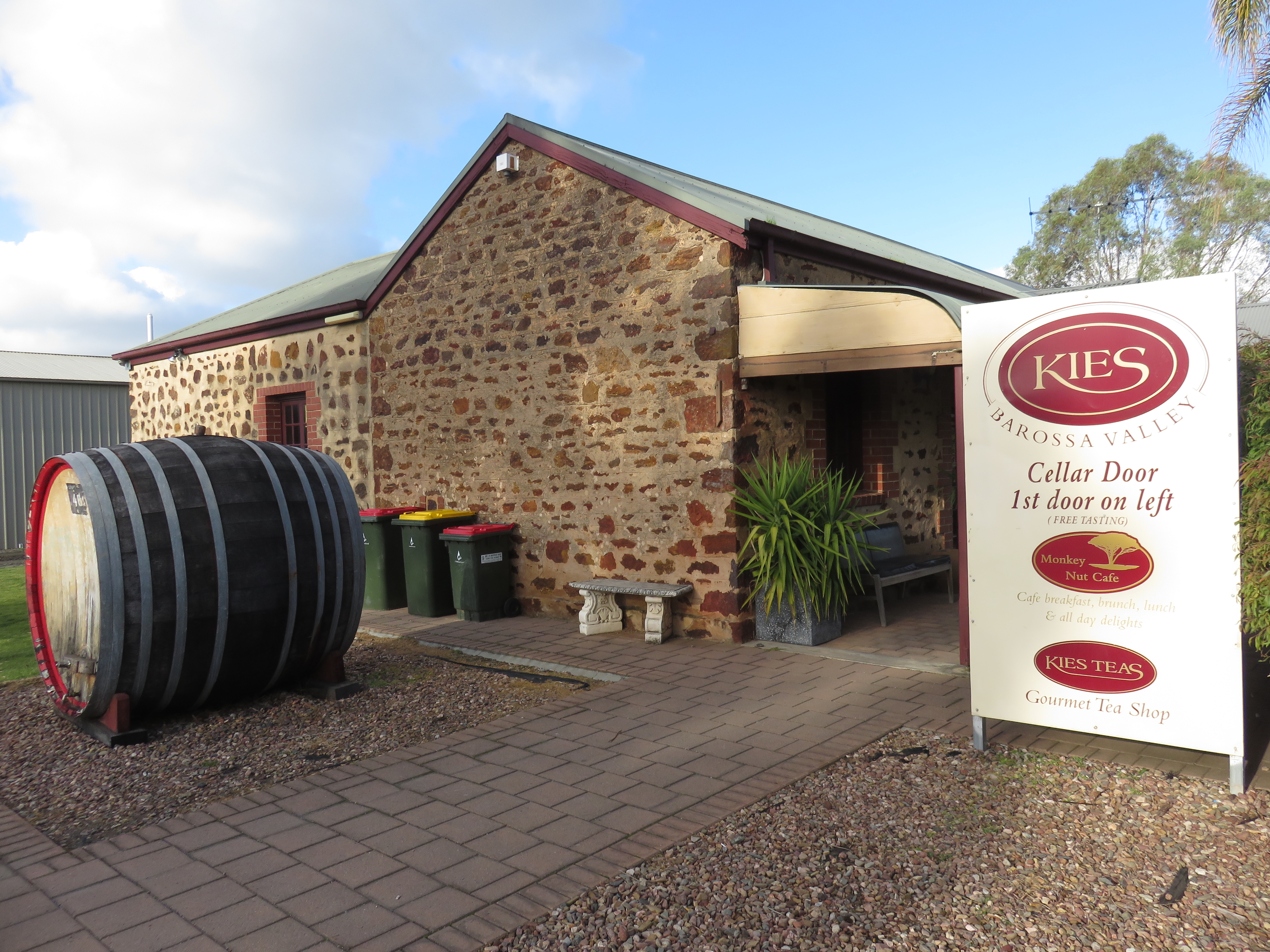 Local wineries, for which the area is well renown, were next on our jam-packed itinerary. With well over a hundred to choose from, we had succinctly whittled our list down to a much more manageable ½ a dozen venues, although even that number was being on the glass ¾ full side of optimistic. Thus, while we meandered about the countryside, taking the Barossa Scenic Drive for the most part, we passed a great number of pristine, orderly fields of barren looking, winterised grape vines, before stopping at our first cellar door of the day, at Rolf Binder Wines, where there was a $5.00 to taste, refundable if you chose to buy something, fee. I’m still not sure if we got ripped off or they got ripped off with that theory, because we ended up getting a ‘free’ tasting. They on the other hand, ended up selling nearly $100 worth of wine.