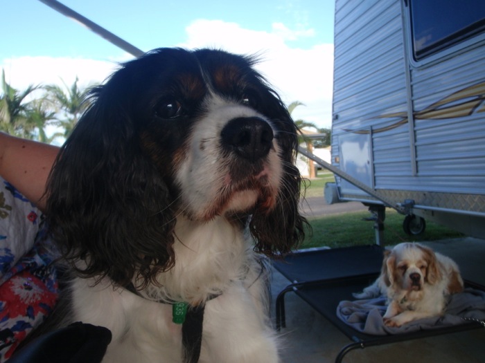 Back at the caravan, having been gone for the better part of 5 hours, I was fully expecting to open the caravan door to be greeted by two dogs resplendent in the remains of our bedding. It was a pleasant shock to find that both of them had probably done little more than lay on the bed and sleep all day. They sure were excited to see us back however, and came out for an enjoyable waltz about the yard. Bethany was especially thankful to expend her pent up energy, bolting about from one end of the yard to the other at full speed, with me barely keeping up behind her, the leash at full stretch.