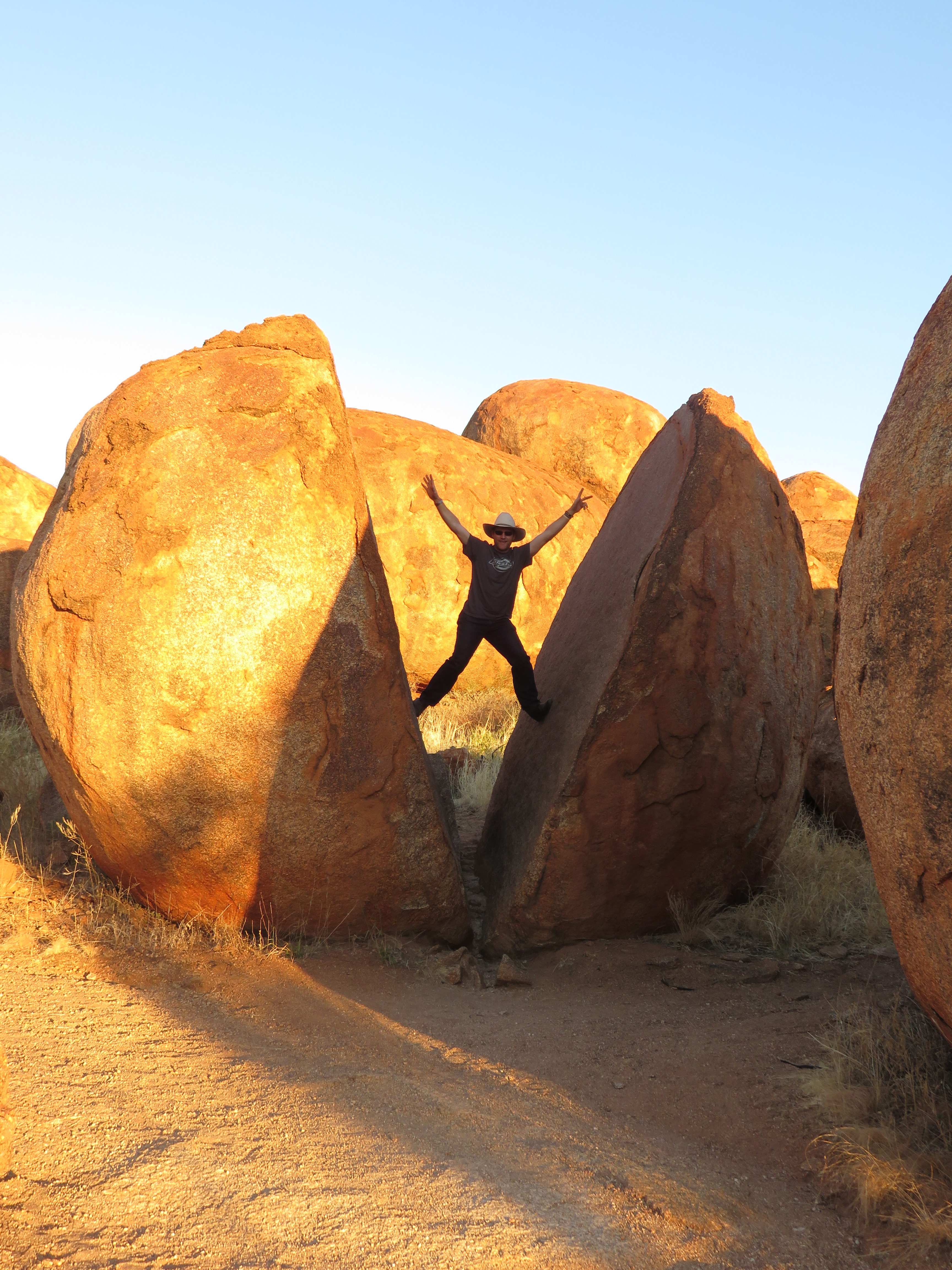 Before heading back to the van, we stopped in town for a final restaurant dinner, stopping at the also advertised on TV ‘Red Ochre Bar and Grill’. The food was delectable, but was far from a budget feed. Two bits of damper and a pat of butter was $9.00. In the same price bracket, we were served a small bowl of chunky fries, alongside another $9.00 bowl containing a few steamed greens. Regardless of the price, we left fully sated, having had the opportunity to taste test kangaroo, emu, camel and for Bec, the chicken. At least we can now tick off our list of things to do, eating both side of the Australian Coat of Arms.