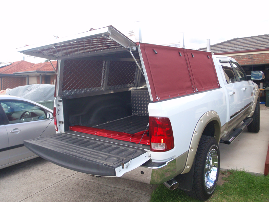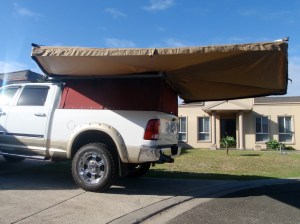As regular readers would know, I have been rather stressed about the canopy since day one, but it was all delivered this week. It has come up an absolute treat, produced exactly to my design. Not a bad effort considering how much my drawing skills leave to the imagination, despite me knowing precisely what I was after. A huge thanks have to go out to Allan and John at Custom Boats & Canopies. Admittedly, I must say, I think ‘The Beast’ looks tougher sans canopy, but the extra lockable storage area was an absolute must have for the trip. Not to mention further storage for lengthy items on the racks, a sweet roll out awning and a fantastic spot to set up a tripod for some high angle photography. With pretty burgundy canvas, to match the detailing on the van, we can roll up any or all of the flaps, and leave the dogs secured behind the security grill sides.