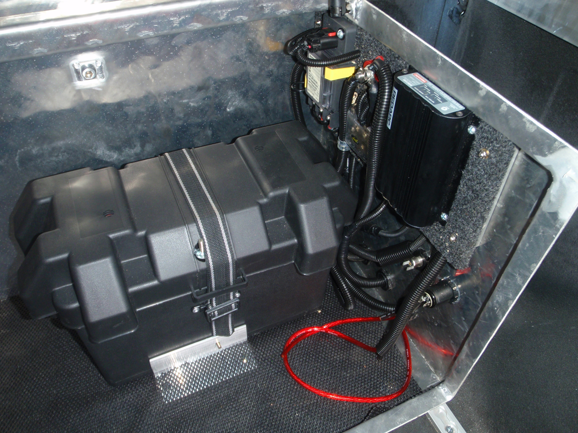 The tool box and battery installation was a pretty big job, involving designing a custom mount for the battery as well as the electrical equipment within the tool box (which was also custom built). I have gone with a Haze 100AH gel deep cycle battery, which is a match for the 2 in the caravan. This gives me the easy option of swapping them around if the need arises. To keep the charge up to this battery, I’m running a Redarc BCDC1240 battery charger. The beauty of this over a standard dual battery set up is two-fold. Firstly, it’s set and forget, working as an isolator so there is absolutely no chance of the starter batteries being accidentally drained by our accessories. Secondly, being a dedicated charger rather than just splitting the available amperage from the alternator, it takes care of batteries of dissimilar chemical compositions and can provide as close to 100% charge as possible. As a bonus, the unit also has a built in solar regulator, so down the track it’s a relatively simple task to hook ‘The Beast’ up for solar input as well. Coupled with marine grade fuse boxes, and over engineered wiring, I’m hoping the system will keep us powered up without a hassle.